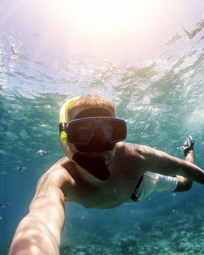 Pas besoin de plonger en profondeur pour s’émerveiller ! Les randonnées palmées offrent une alternative douce et immersive pour explorer la surface des fonds marins, avec la possibilité de vivre un moment magique au coucher du soleil.