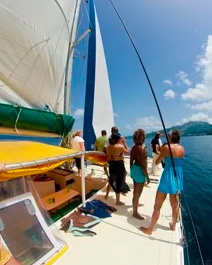 Au programme : des arrêts snorkeling sur des fonds riches en coraux et poissons tropicaux, une escale aux Anses-d’Arlet pour flâner dans les ruelles colorées ou savourer une glace locale, et bien sûr, une ambiance détendue, rythmée par le sourire de l’équipage et le doux clapotis des vagues.